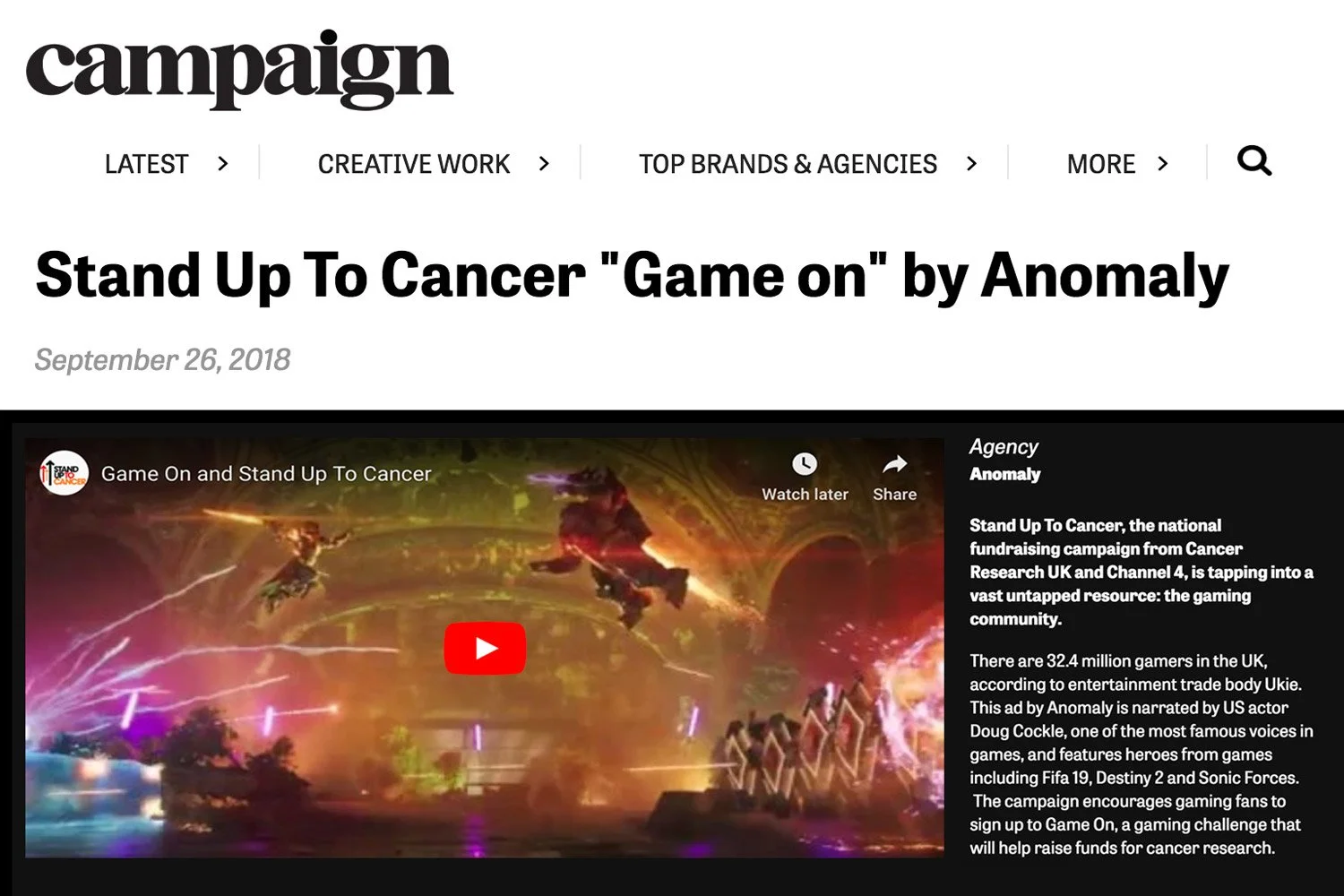 Stand Up To Cancer: Game On